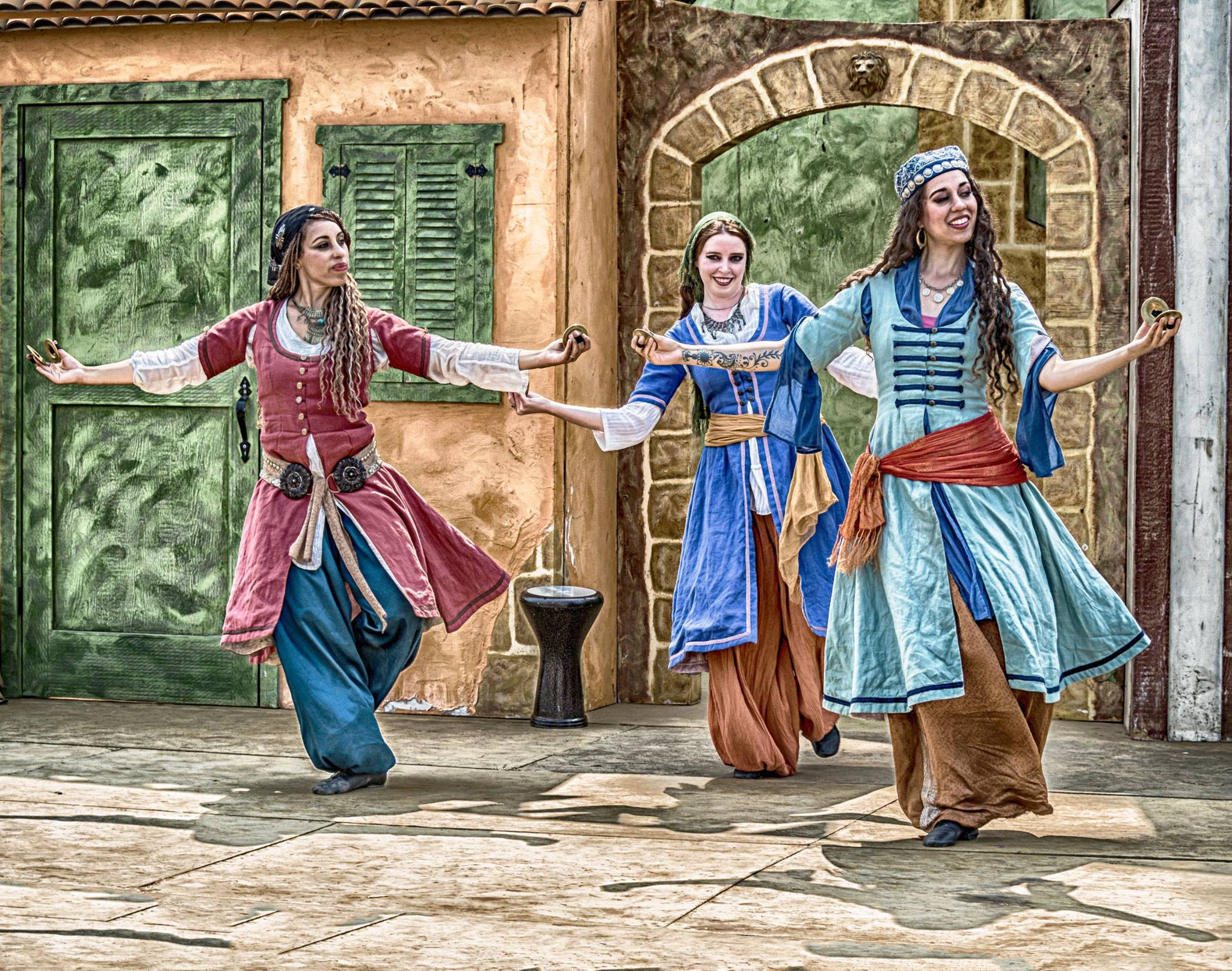 Costumes are historically researched to reflect an Arabic style of the Ottoman-era time period.